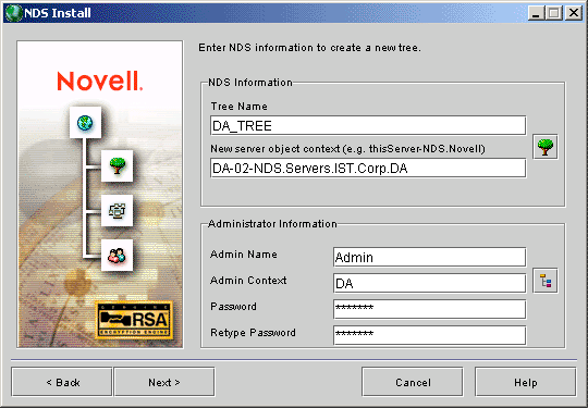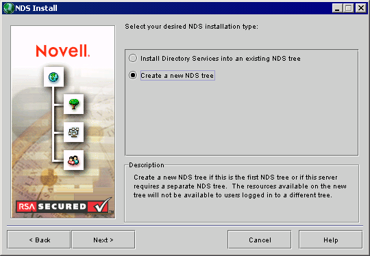 In the NDS Install window, select Create a New NDS Tree > click Next.