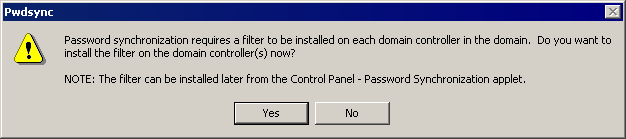 In the Password Synchronization Setup dialog box, fill in the fields: