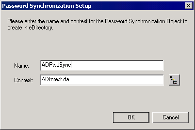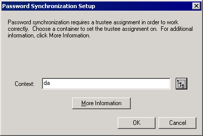 In the Context field of the next Password Synchronization Setup dialog box, type DA > click OK.
