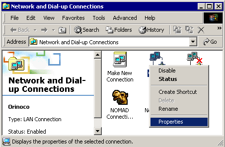 In the Network and Dial-up Connections window, right-click any network connection icon > select Properties.