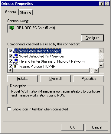 In the Properties dialog box, select the Novell Workstation Manager component and click Uninstall. Confirm the Uninstall by clicking Yes. Repeat the process for the Novell Distributed Print Services > click OK to close the Properties window.