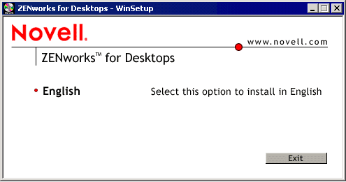 In the ZENworks for Desktops - WinSetup window, click English > Install ZENworks.