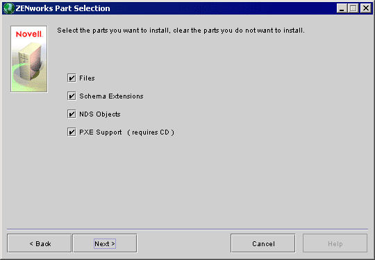 In the ZENworks Part Selection screen, ensure that all options are selected > click Next.