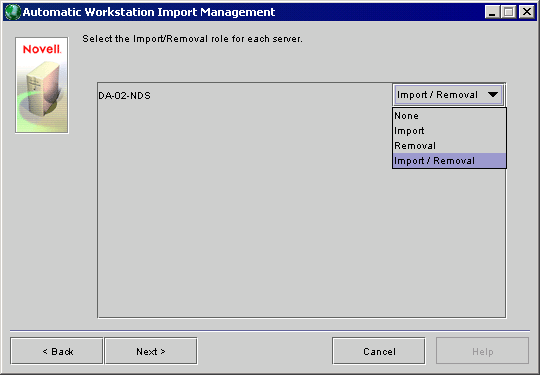 In the Automatic Workstation Import Management window, select Import/Removal > click Next.