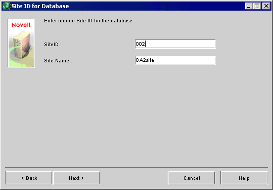 In the Site ID for Database window, enter 002 in the SiteID field and DA2site for Site Name > click Next.