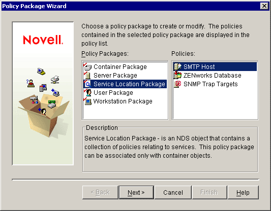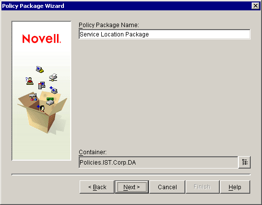 In the Policy Package Wizard window, select Service Location Package > click Next.