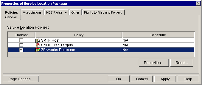 In the Properties of Service Location Package window, enable the check box for ZENworks Database > click the Properties button.
