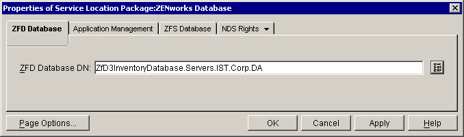 In the Properties of Service Location Package:ZENworks Database dialog box, click the directory browser button > browse to the .Servers.IST.Corp.DigitalAirlines container > select ZfD3InventoryDatabase > click OK > click OK.