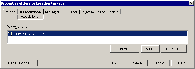 In the Properties of Service Location Package window, click the Associations tab > Add.