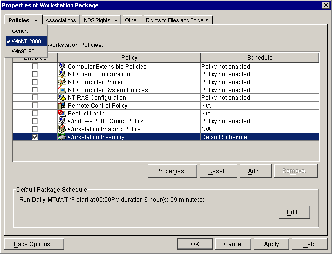 In the Properties of Workstation Package window, click the Policies tab > select Windows NT/2000.