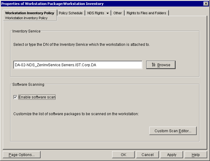 In the Properties of Workstation Package:Workstation Inventory dialog box, browse to select your ZENworks Inventory Service object. It should be located in the .Servers.IST.Corp.DigitalAirlines container.