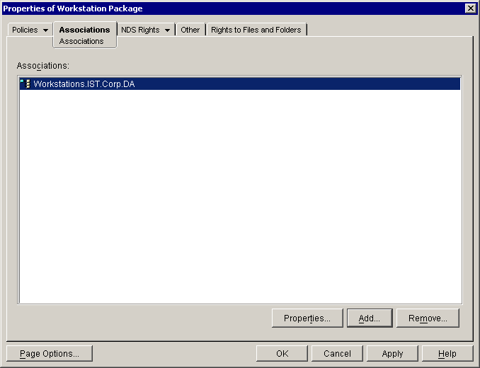 In the Properties of Workstation Package window, click the Associations tab > click the Add button.