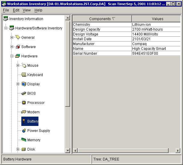 The resulting Workstation Inventory window shows the inventory for the specific workstation you selected to view.