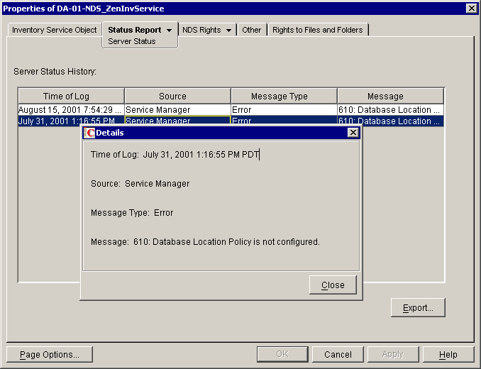 The log entries can also be accessed by opening the ZENworks Inventory Server object.