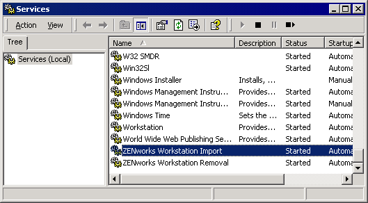 In the Services window, select the ZENworks Workstation Import service > click the Actions menu > click Restart Service.