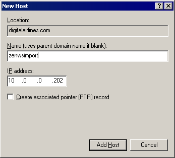 By default, the ZFD 3 workstation registration agent looks for the import service running on the server with a hostname of zenwsimport. To use DNS, the workstation must be able to ping the service at zenwsimport. Therefore, you must create an entry in DNS, or put zenwsimport in each workstation's HOSTS table.
