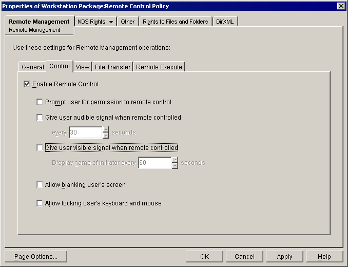 In the Properties of Workstation Package window, enable the check box for Remote Control Policy > click Properties.