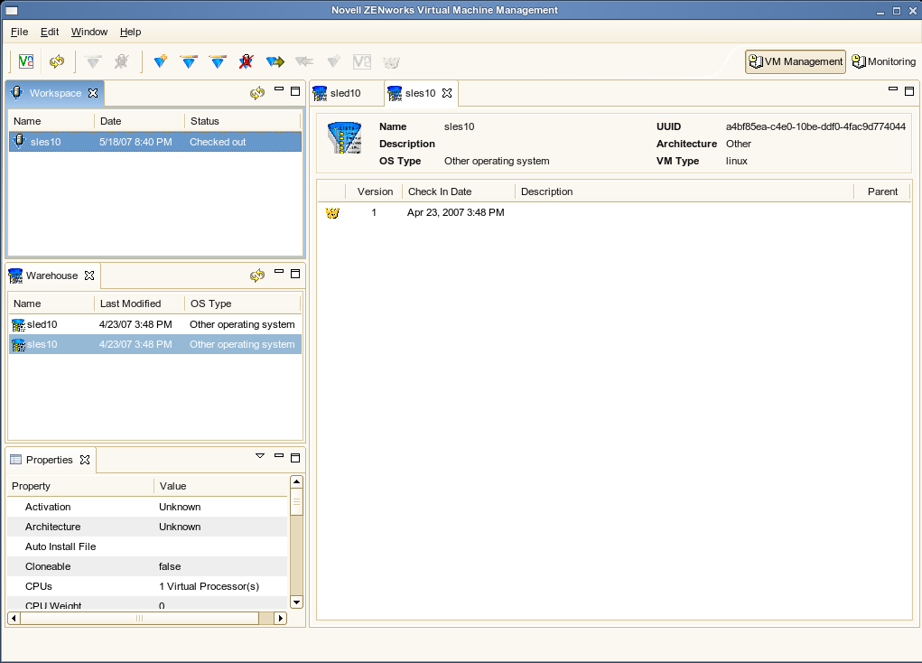 Figure 2-7 Novell ZENworks Orchestrator Virtual Machine Manager interface.