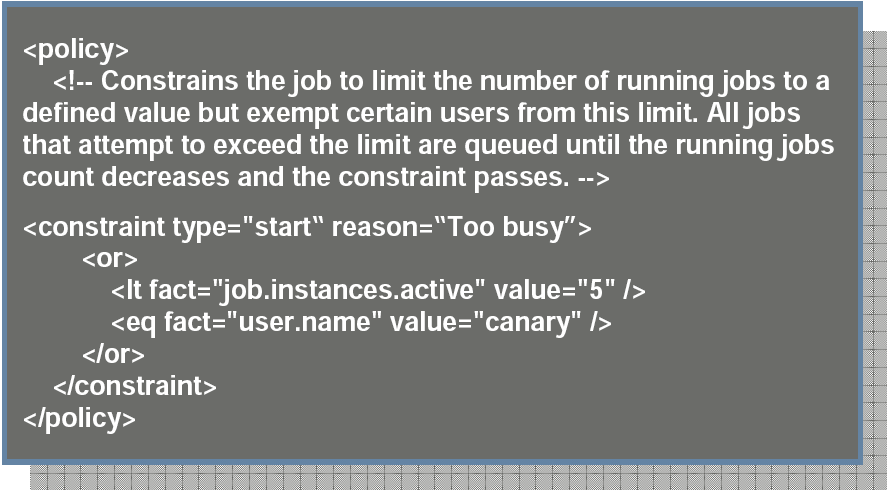 An example of a policy that constrains the start of a job or test because too many tests are already in progress is shown in the following figure: