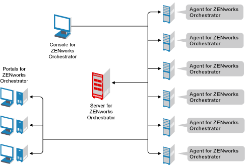 The ZENworks Orchestrator Server is the gateway between enterprise applications and resource servers. The server has two primary functions:
