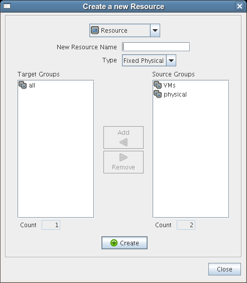In the list box, select the resource group icon, click to move this source group to the list box, click , then click .