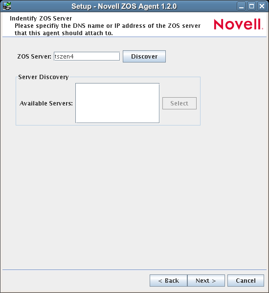 Follow the prompts in the wizard until the page displays. Here, you need to ensure that you correctly enter the server_name_for_ZENworks_Orchestrator in the field.