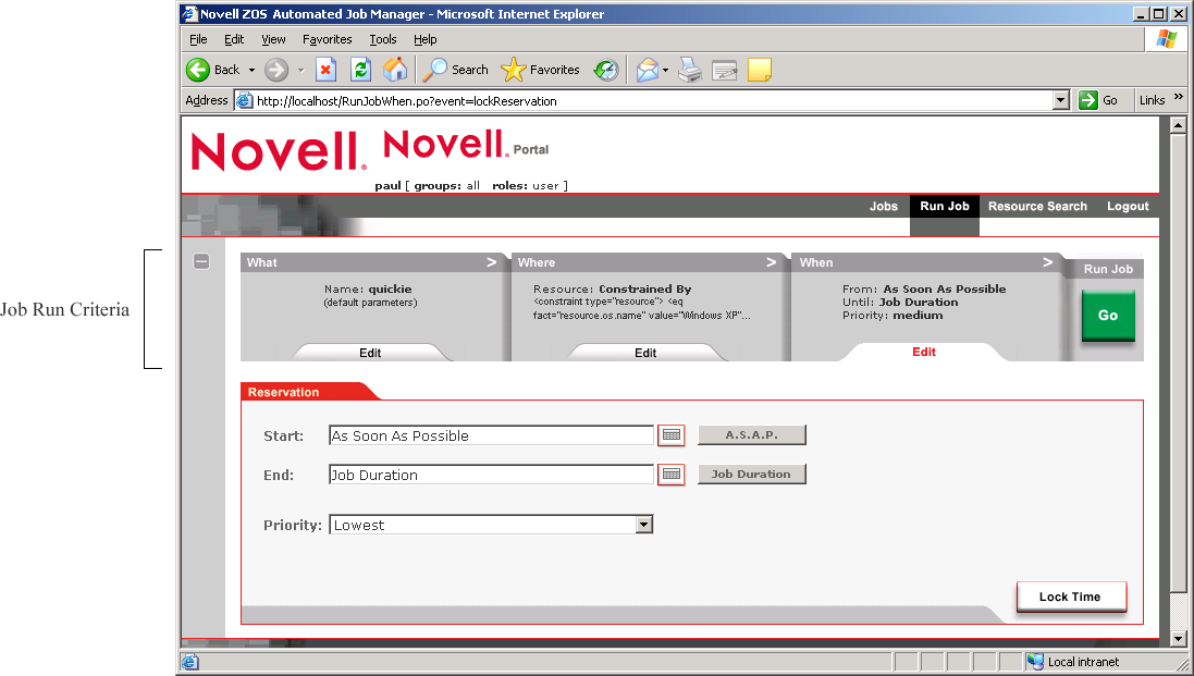 Figure 2-3 The User Portal Displaying the Job Run Criteria Previously Selected
