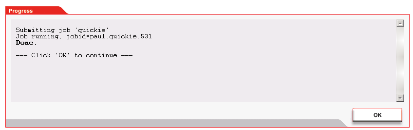 Figure 2-4 Progress Message Displayed for the “Quickie” Job