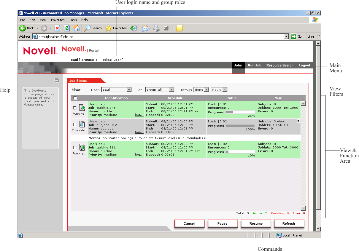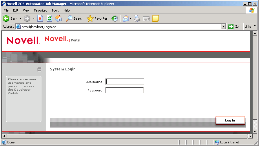 The ZOS Server includes a Web server that runs the User Portal in HTML. This portal is an administration tool that helps users manage the jobs that are deployed to managed computing resources, but it does not provide a facility to run jobs, even if you are logged in as an administrator.