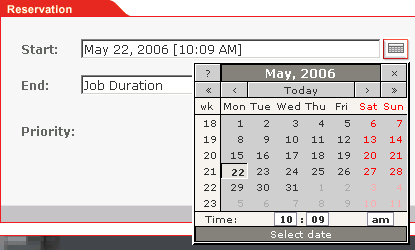 (Optional) Click the calendar icon located adjacent to the field, then select a date and time to complete the job. You can also accept the default in the field: .