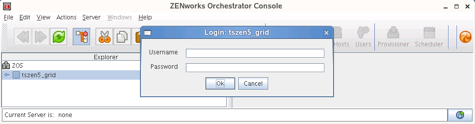 Enter your ZENworks Orchestrator Console administrator username and password.