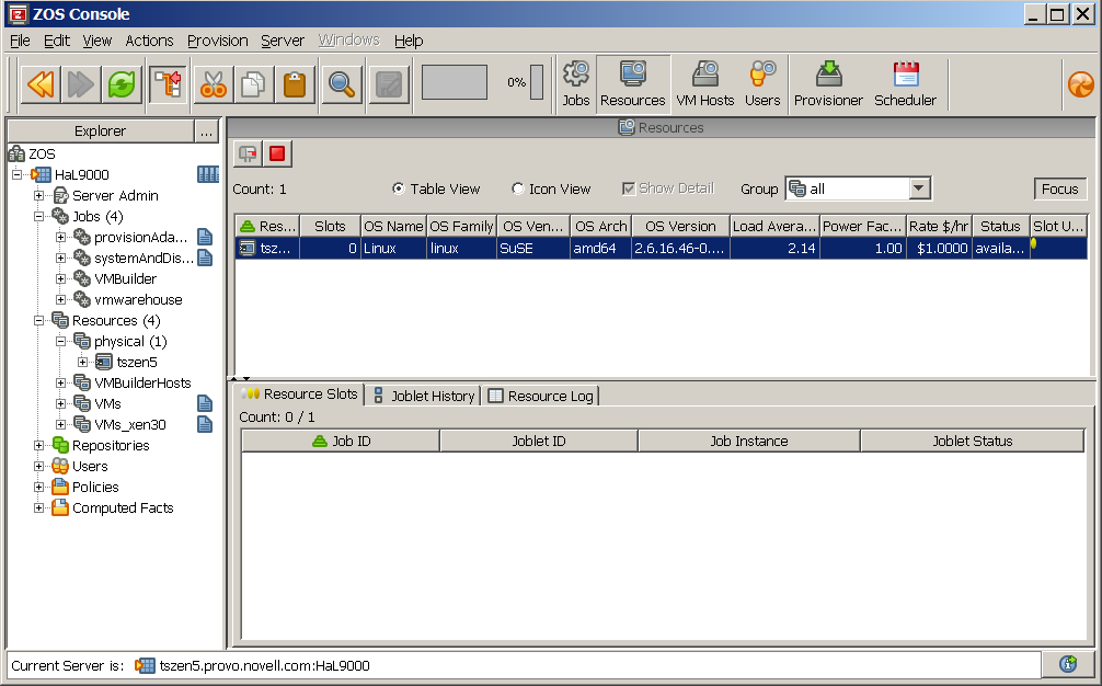 For detailed information about the components, icons, and usage of the ZENworks Orchestrator Console, see Using the ZENworks Orchestrator Console