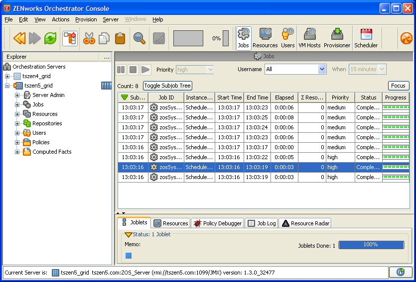 Figure 3-1 Resource Tree with VMs in Explorer Window of the ZENworks Orchestrator Console