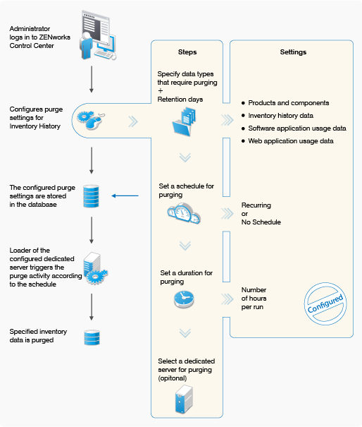 Inventory data can accumulate over a period of time, increasing the ZENworks database size and slowing down the inventory reporting process. To maintain database efficiency, you should purge the historical inventory data regularly. This process of deleting unwanted, obsolete inventory data is called purging the inventory history.