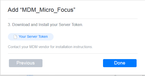 Click Your Server Token, download the token issued by Apple and click Done.