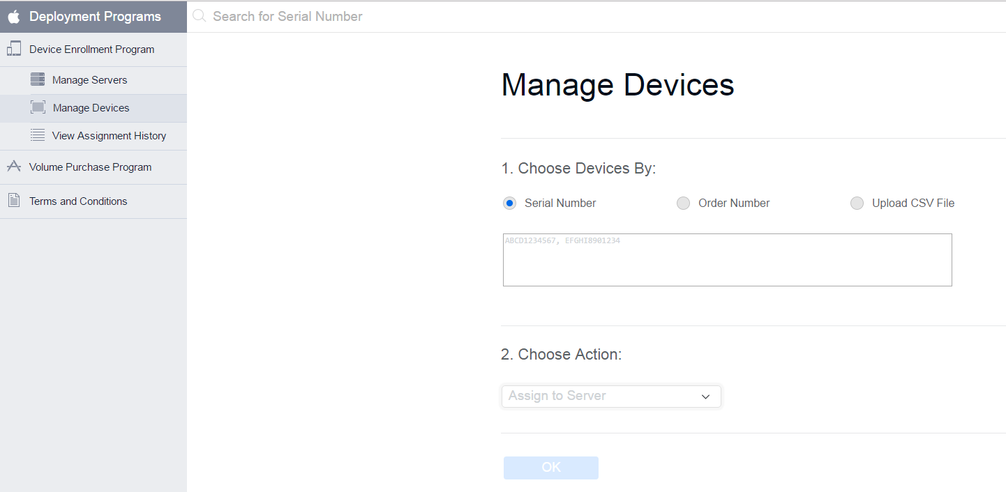 Sign-in to the Deployment Program Web Portal and click Device Enrollment Program > Manage Devices on the left pane of the page.