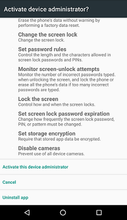 Click Activate this Device Administrator to enable you to manage the device by performing the operations listed in this screen.