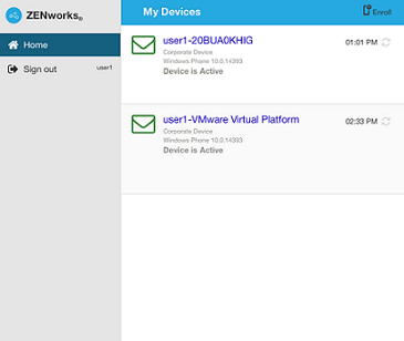 All devices associated with the user, are displayed in the ZENworks User Portal.