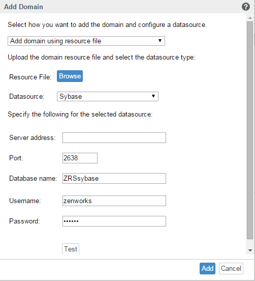 Choose Add domains from ZENworks Management Zone, then specify the following: