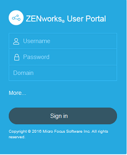 The login screen for the ZENworks User Portal is displayed. You use the user portal to enroll devices to the zone.
