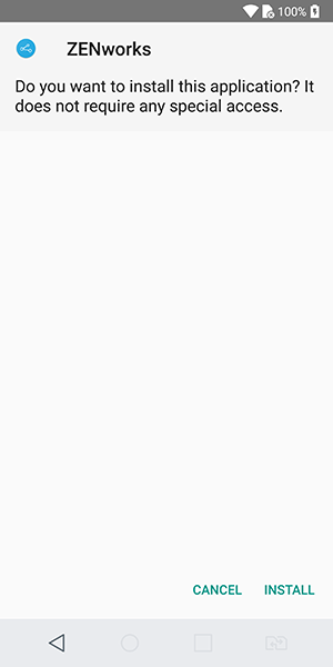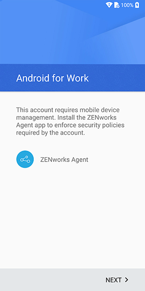 Click Next in the Android for Work page to proceed with the ZENworks App installation.