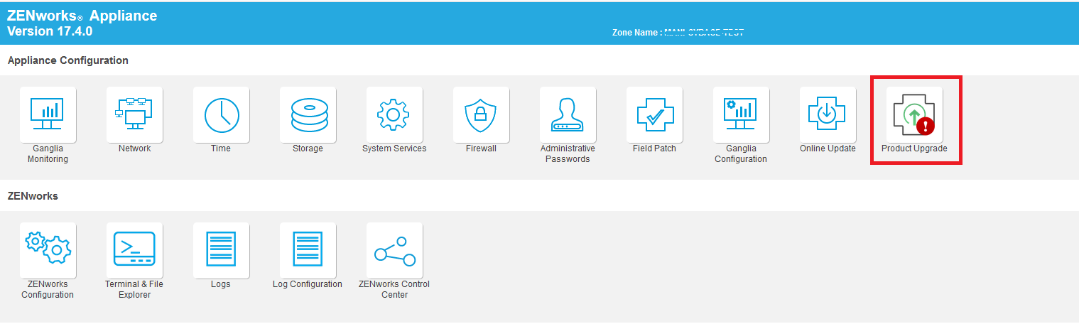 • If you are facing any issues while upgrading the appliance, you can either refer to the zen-app-osupgrade-<version>.log file available in the /var/opt/novell/log/zenworks/ location, or contact Micro Focus Customer Support.