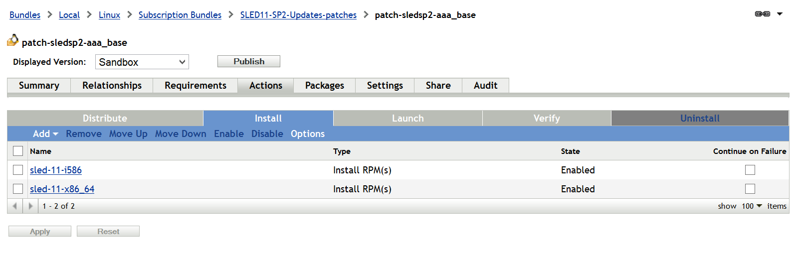 Linux bundles are ideal when you want to perform software installs as an atomic unit of work, such as installing a web server. A Linux bundle for this task might first install the relevant Apache2 web server packages, modify the web server configuration files, deploy a set of web content to the data folder and then flag the service to start in runlevels 3 and 5. Linux bundles are also typically used to drive the update of SUSE Linux Service Packs.