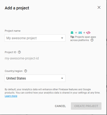 Follow these steps, if you want to create a Firebase project. However, if you have already created a GCM project and want to import the project to FCM, then go to Importing a GCM Project to Firebase.