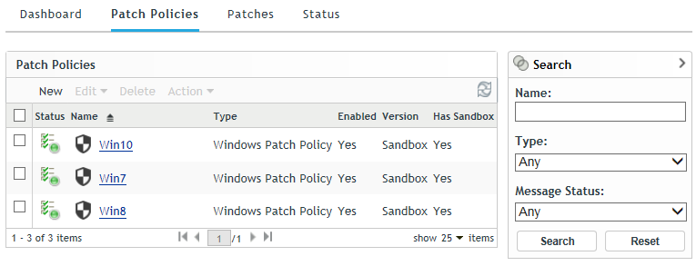 You view, create, modify, and delete patch policies from the Patch Policies page. For detailed information about creating and managing patch policies, see Creating and Publishing Patch Policies.