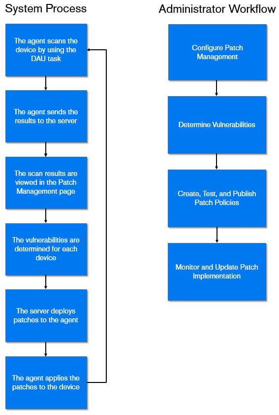 The following process maps demonstrate how patch information is communicated between the ZENworks Server and the ZENworks Agent and the general workflow administrators use to implement patch policy across the management zone: