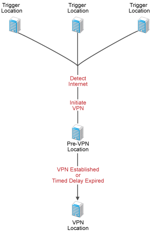 As soon as the Internet is detected, the location switches from the Trigger location to the VPN location. In some situations, going directly to the VPN location might enforce security policies that prevent the device from establishing a VPN connection.