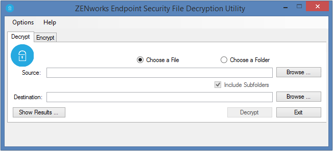 Launch the File Decryption utility (ZESDecrypt.exe).
