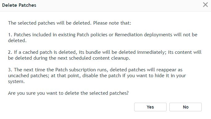 Click Yes to confirm the deletion. Click No to return to the Patches page.