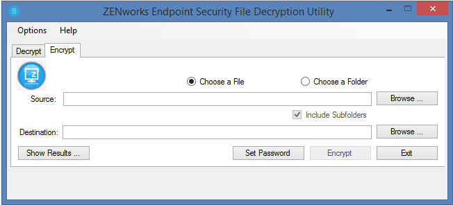1. Launch the File Decryption utility (ZESDecrypt.exe).